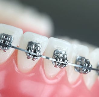 Esse é o tipo mais comum de aparelho utilizado, e apresenta uma excelente eficácia para a grande maioria dos problemas dentários. Sua estrutura é composta por braquetes metálicos, fio, bandas ou tubos e utiliza ligaduras elásticas (as famosas borrachinhas coloridas). É um aparelho resistente e que permite um fácil acompanhamento e controle das correções pelo dentista. Seus cuidados requerem a colaboração constante do paciente para garantir uma boa higienização. Sua principal desvantagem, porém, é o baixo apelo estético por se tratar de um aparelho de metal. Devido à grande opção de cores dos elásticos, esse tipo de aparelho é a escolha da maioria dos jovens (apesar de, por vezes, desagradar os adulto).