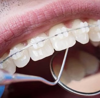 Uma opção mais discreta e tão eficaz quanto os aparelhos metálicos, são os aparelhos estéticos. Contudo, sua diferença fica na composição dos materiais utilizados, podendo ser confeccionados em materiais como a cerâmica (porcelana) e a safira. O aparelho cerâmico é mais opaco, enquanto o de safira tem aspecto mais translúcido. A vantagem de ambos de materiais é a estética, pois as peças brancas ou transparentes, torna o aparelho mais discreto. Também é possível optar pelo fio estético, coberto por uma fina camada de teflon, que fica da mesma cor dos dentes, deixando o aparelho ainda mais translúcido. Os aparelhos de porcelana ou safira não amarelam com o tempo porém, quem utiliza ligaduras elásticas deve evitar o consumo de alimentos com corante para evitar o amarelamento das borrachinhas.