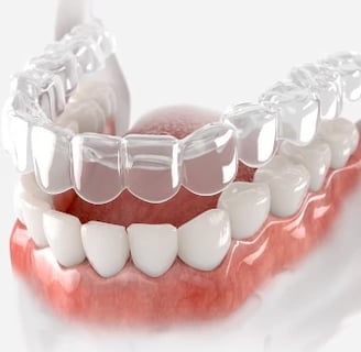 Um dispositivo transparente e removível, personalizado, para correção ortodôntica. São um conjunto de placas transparentes removíveis com a finalidade de realizar a movimentação gradual dos dentes. O ganho principal para o paciente é visual, já que o alinhador é praticamente imperceptível no sorriso. A estética é bastante beneficiada com o uso de alinhadores transparentes, mas não é só isso , eles trazem vantagens extras para o paciente e para o dentista como: facilidade de remoção do aparelho para comer, praticidade para higienização (escovação e uso do fio dental).