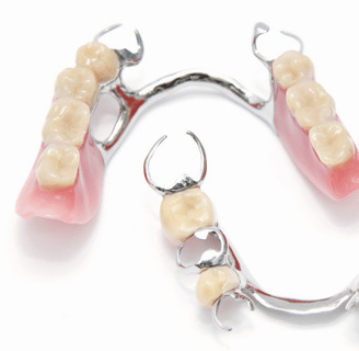 Substitui os dentes naturais perdidos em arcadas, nas quais ainda permanecem alguns dentes naturais, ou seja, onde há perda parcial de dentes. É chamada de removível porque pode ser retirada da boca no momento em que o paciente desejar. Esse tipo de prótese necessita de grampo e armação metálica com dentes artificiais nacionais e ou importados .