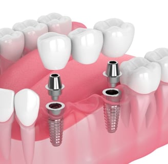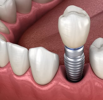 São feitos de titânio que servem para substituir a raiz do dente. Indicados para pacientes com perda unitária, parcial ou de todos os dentes. Recupera a função mastigatória, estética e principamente a autoestima.