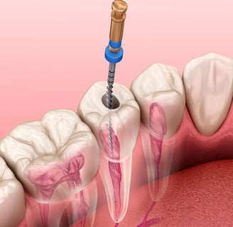 É um tratamento para reparar e salvar dentes muito danificados ou infectados. O procedimento envolve a remoção da polpa ("o nervo") do dente que fica no interior da raiz promovendo a limpeza, desinfecção e, em seguida, o preenchimento e selamento dessa raiz. As causas comuns que afetam a polpa são dentes trincados, cárie profunda, tratamento de canal repetido (retratamento) ou trauma.